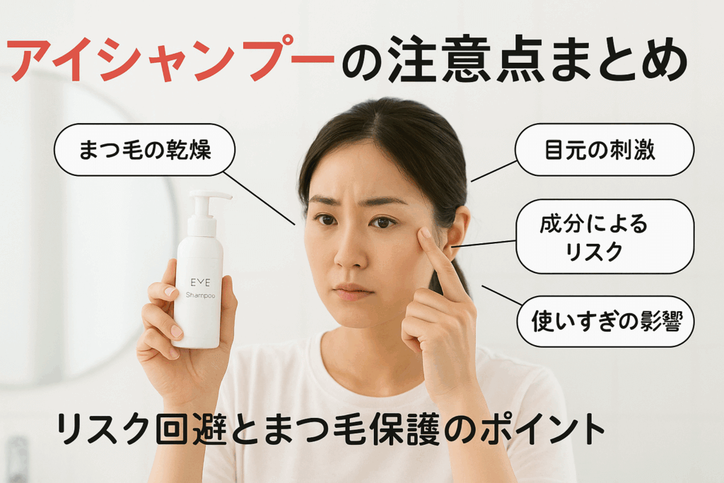 アイシャンプーを過剰に使い過ぎると、まぶたやまつ毛の皮脂・バリア機能を損なうリスクがあります。まつ毛が細くなったり、抜けやすくなったと感じた場合、回数や量の見直しが必要です。