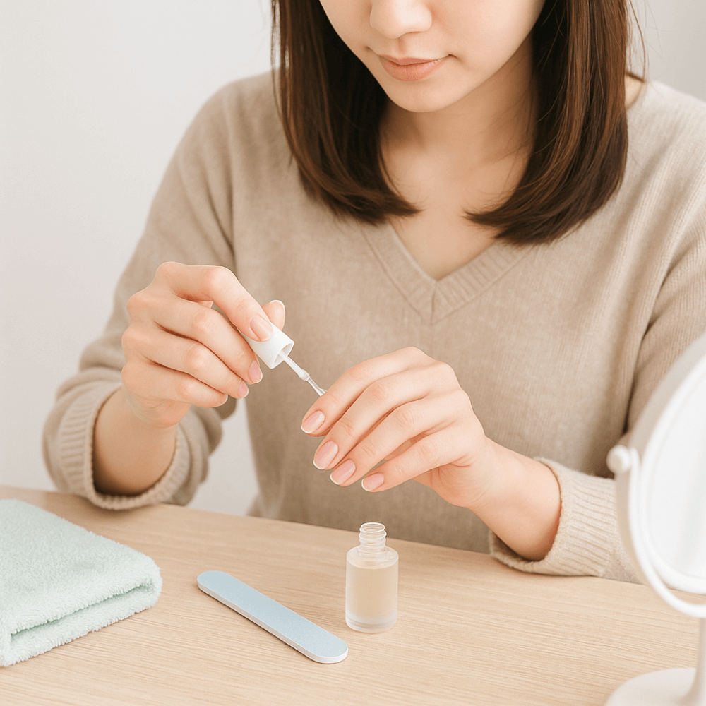 割れやすい場合は自爪育成用ベースコートや補強コートを使い、表面の強度を保つと安心です。